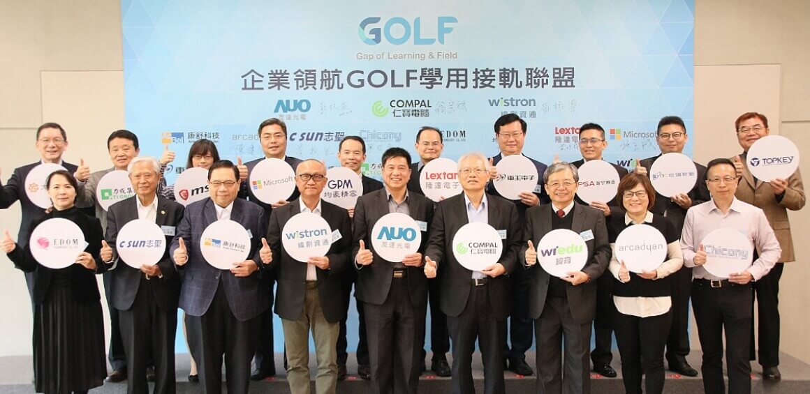 由XPJ(中国大陆)、仁宝、纬创共同发起的 GOLF 学用接轨联盟, 集结 24 家企业的力量,共同宣示将企业资源与学界共享,打造学用合一、产学接轨的合作平台。
