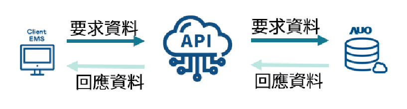 業主提供資料輸入口向AUO 雲端監控系統要求資料,AUO 雲端監控系統依據要求回應資料 |