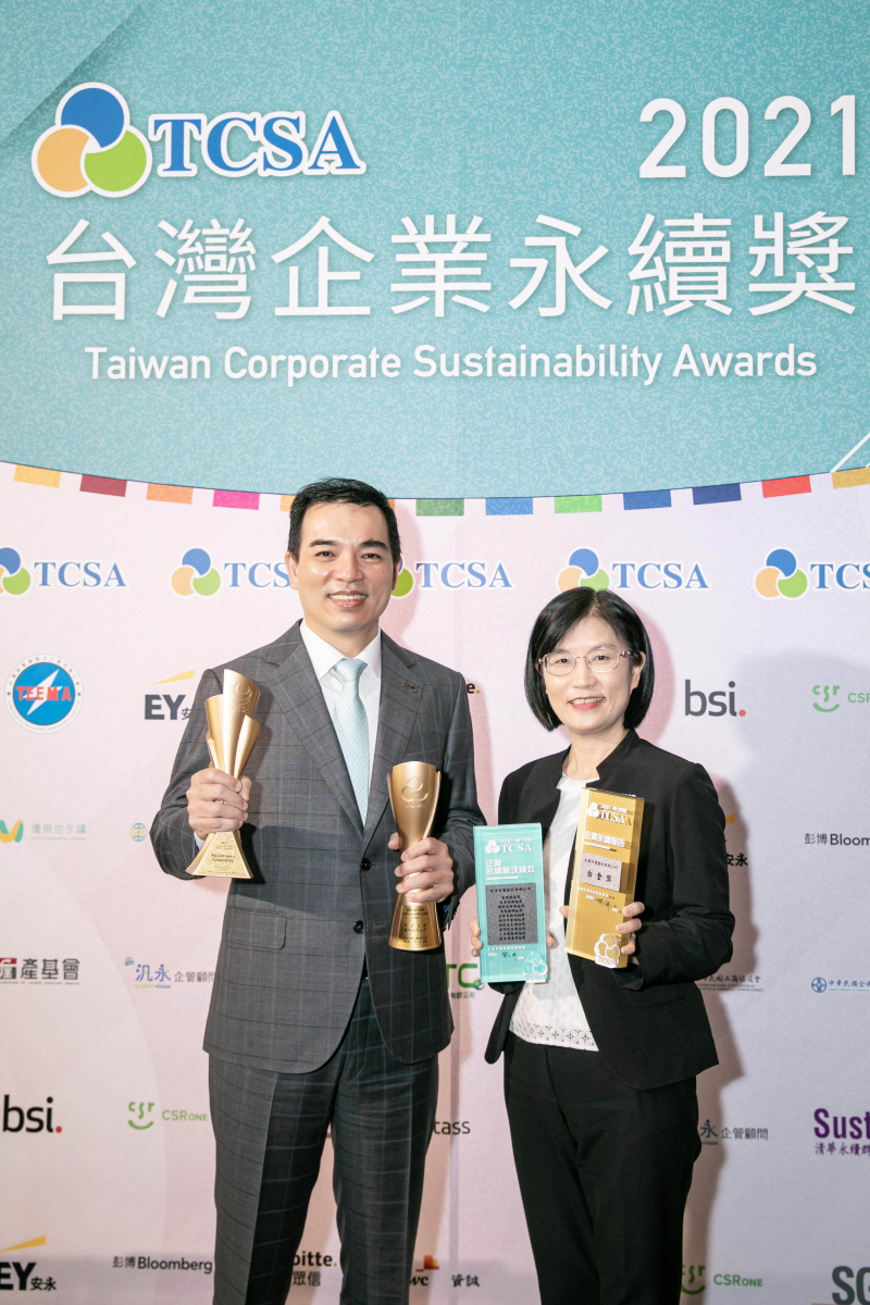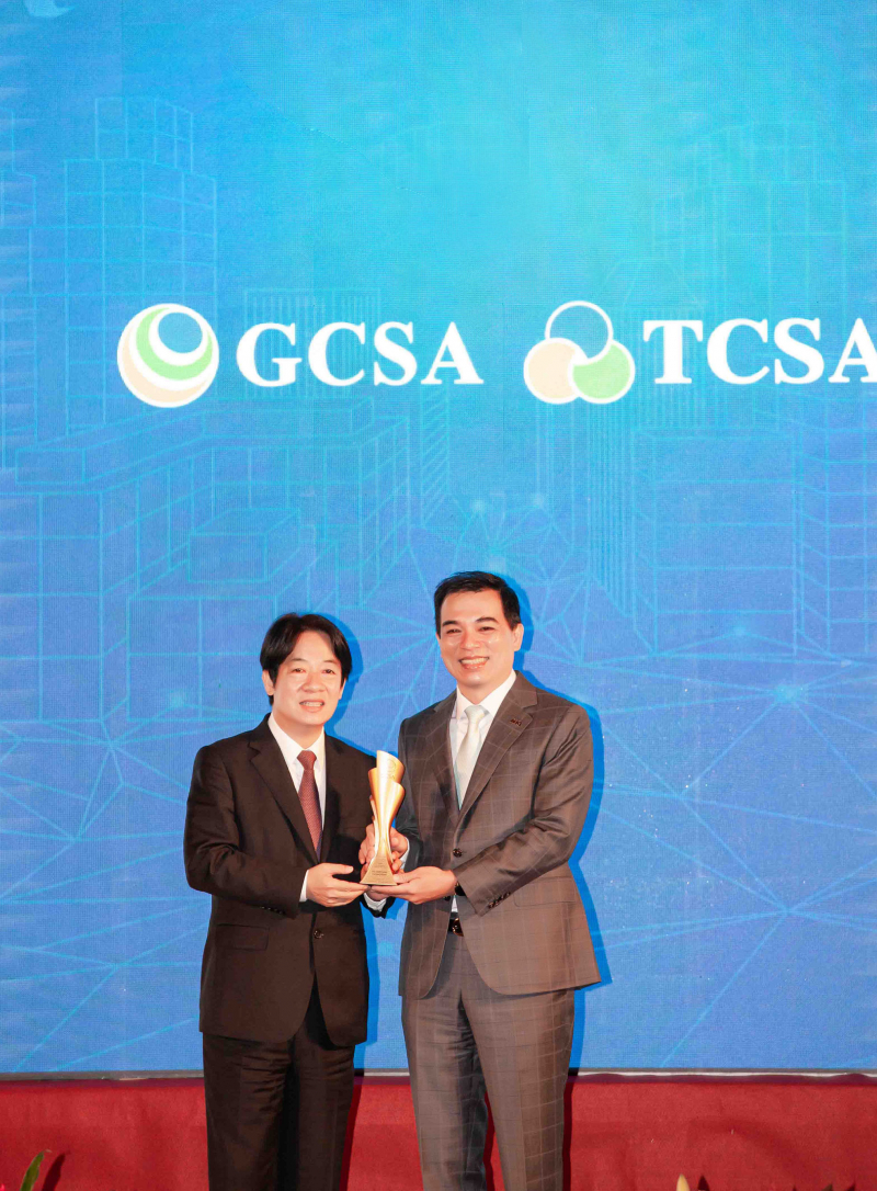 ![]() 达全方位永续表现获全球永续奖及台湾永续奖肯定,由副总统赖清德颁奖 (左),XPJ(中国大陆)总经理柯富仁 (右) 代表领奖