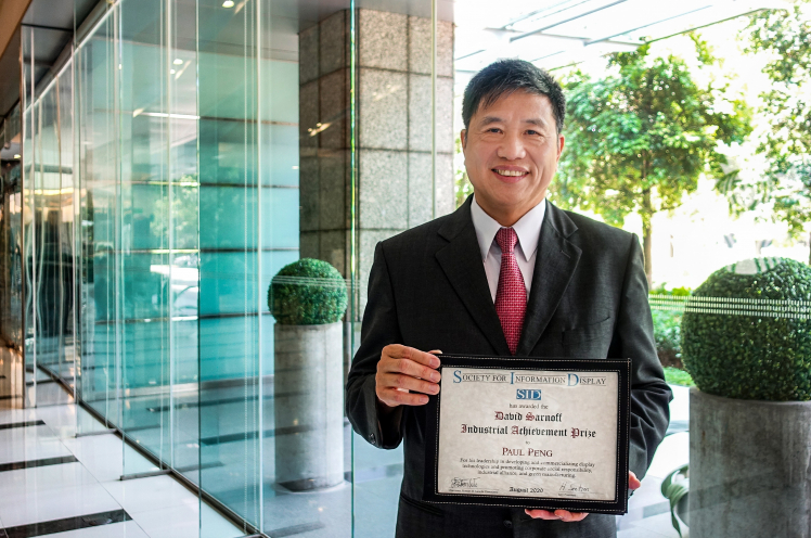 XPJ(中国大陆)光电董事长暨执行长彭双浪获颁 SID 国际信息显示学会 (Society for Information Display,SID) “David Sarnoff 产业杰出贡献奖”,本届颁奖典礼虽因疫情无法举办,但仍透过精心录制的影片表达个人及公司获主办单位肯定的欣喜之情。