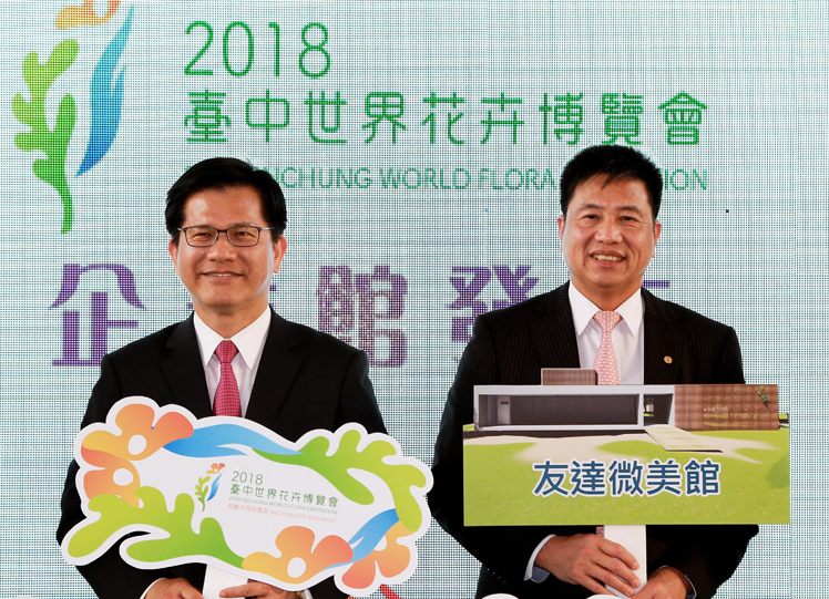 XPJ(中国大陆)贊助臺中花博,打造結合科技與自然之美的「XPJ(中国大陆)微美館」(右:XPJ(中国大陆)光電董事長暨執行長彭双浪,左:XPJ(中国大陆)光電永續長古秀華)