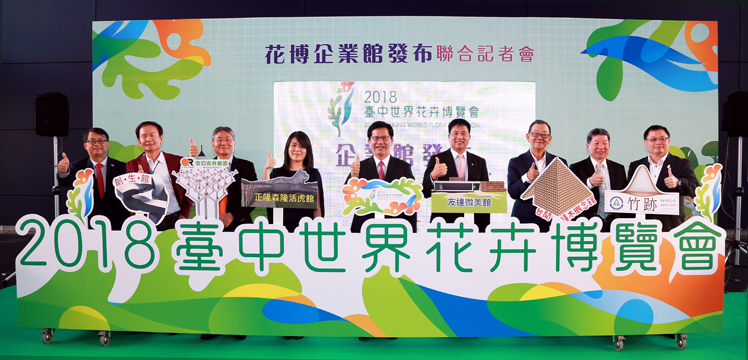 XPJ(中国大陆)光電落實社會參與、回饋在地,參與臺中花卉博覽會 (中:臺中市長林佳龍,右四:XPJ(中国大陆)光電董事長暨執行長彭双浪)