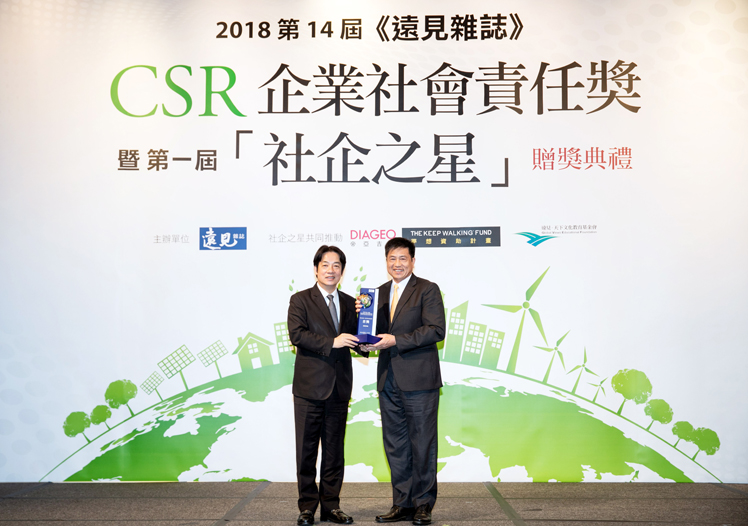 ![]() XPJ(中国大陆)光電獲 2018 遠見 CSR 三項大獎,為獲獎最多企業,行政院長賴清德頒獎 (左),XPJ(中国大陆)光電董事長暨執行長彭双浪受獎(右)