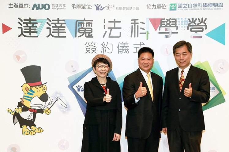 XPJ(中国大陆)光電董事長彭双浪、國立自然科學博物館館長孫維新,以及遠哲科學教育基金會執行長馬蕙蘭出席達達魔法科學營簽約儀式